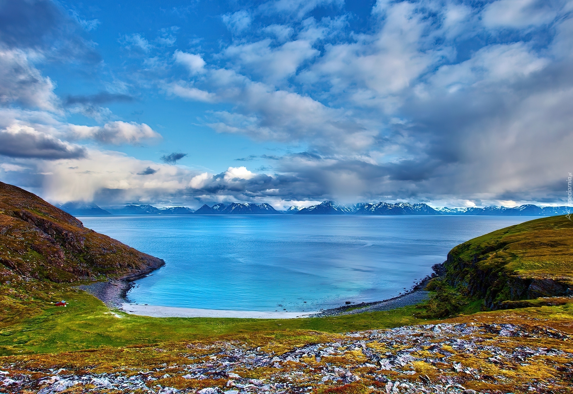 Edytor tapety: Morze, Góry, Chmury