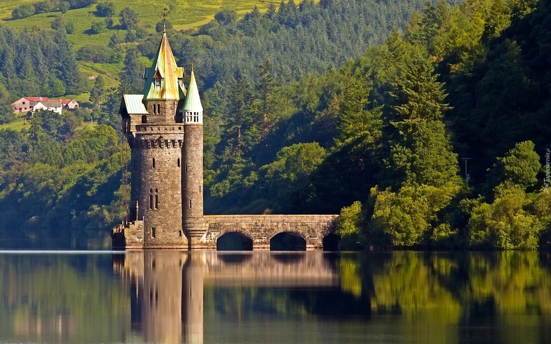 Edytor tapety: Jezioro, Zamek, Góry, Lasy, Jesień