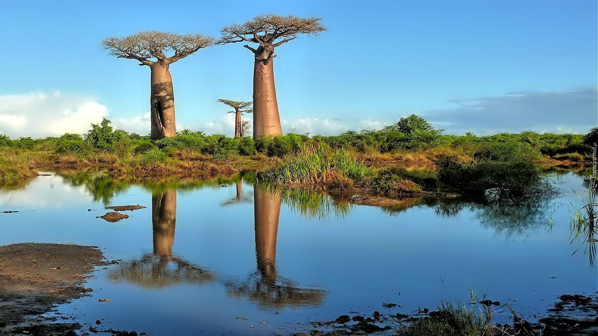 Edytor tapety: Drzewa, Baobaby, Sawanna, Woda, Odbicie