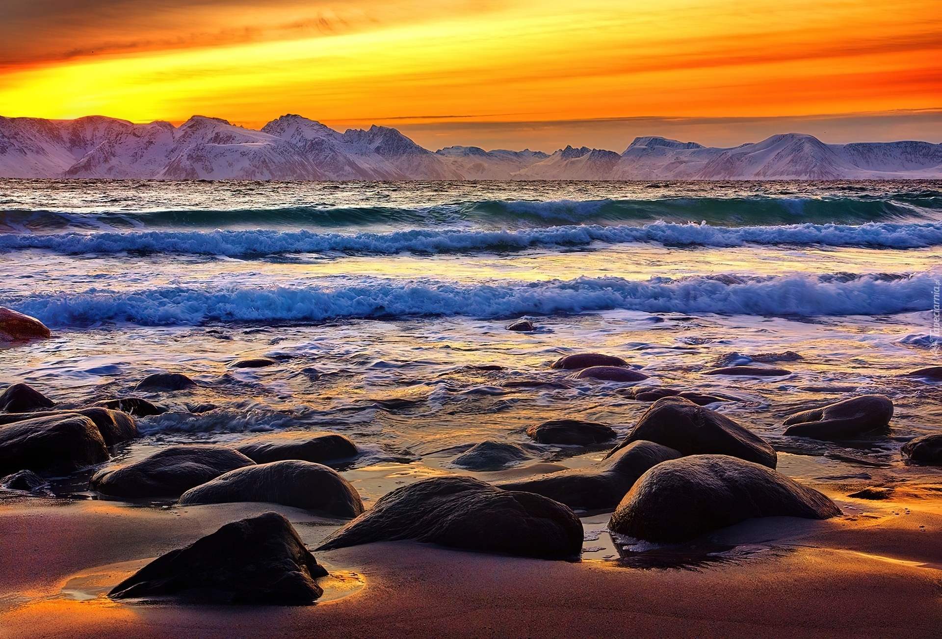 Edytor tapety: Zachód, Słońca, Morze, Kamienie