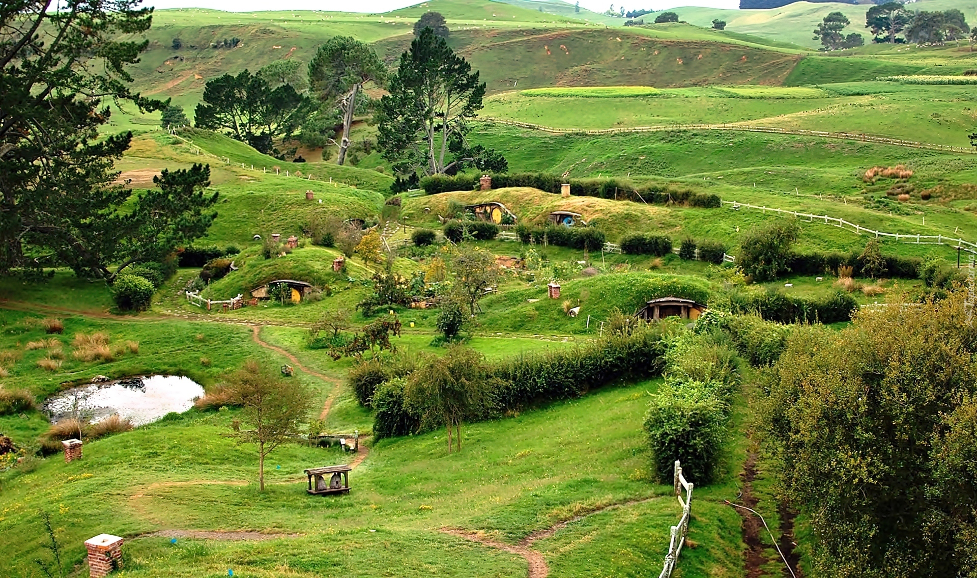 Edytor tapety: Kraina, Hobbitów, Wzgórza, Łąki, Domy, Roślinnność