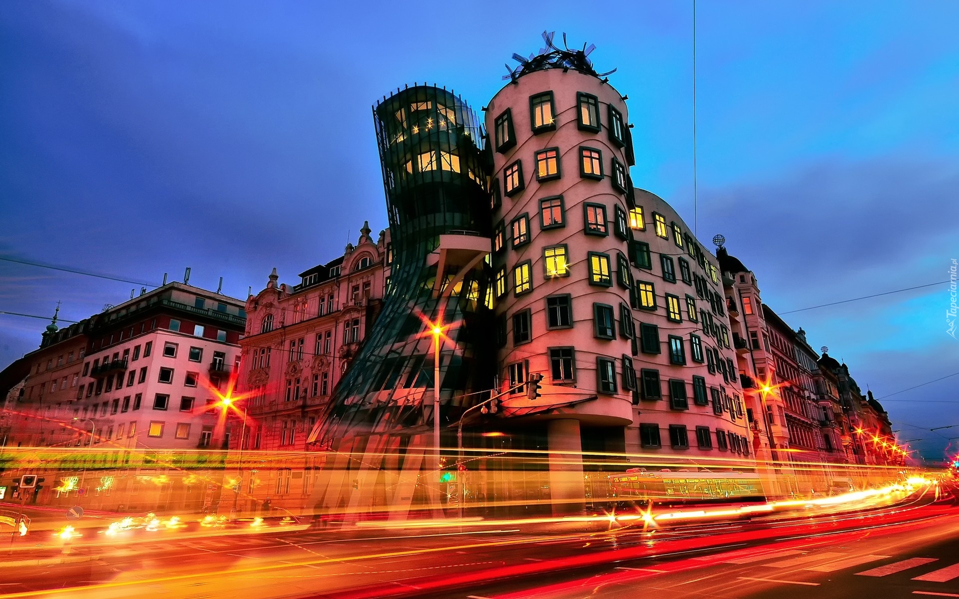 Edytor tapety: Krzywe, Domy, Ulica, Praga