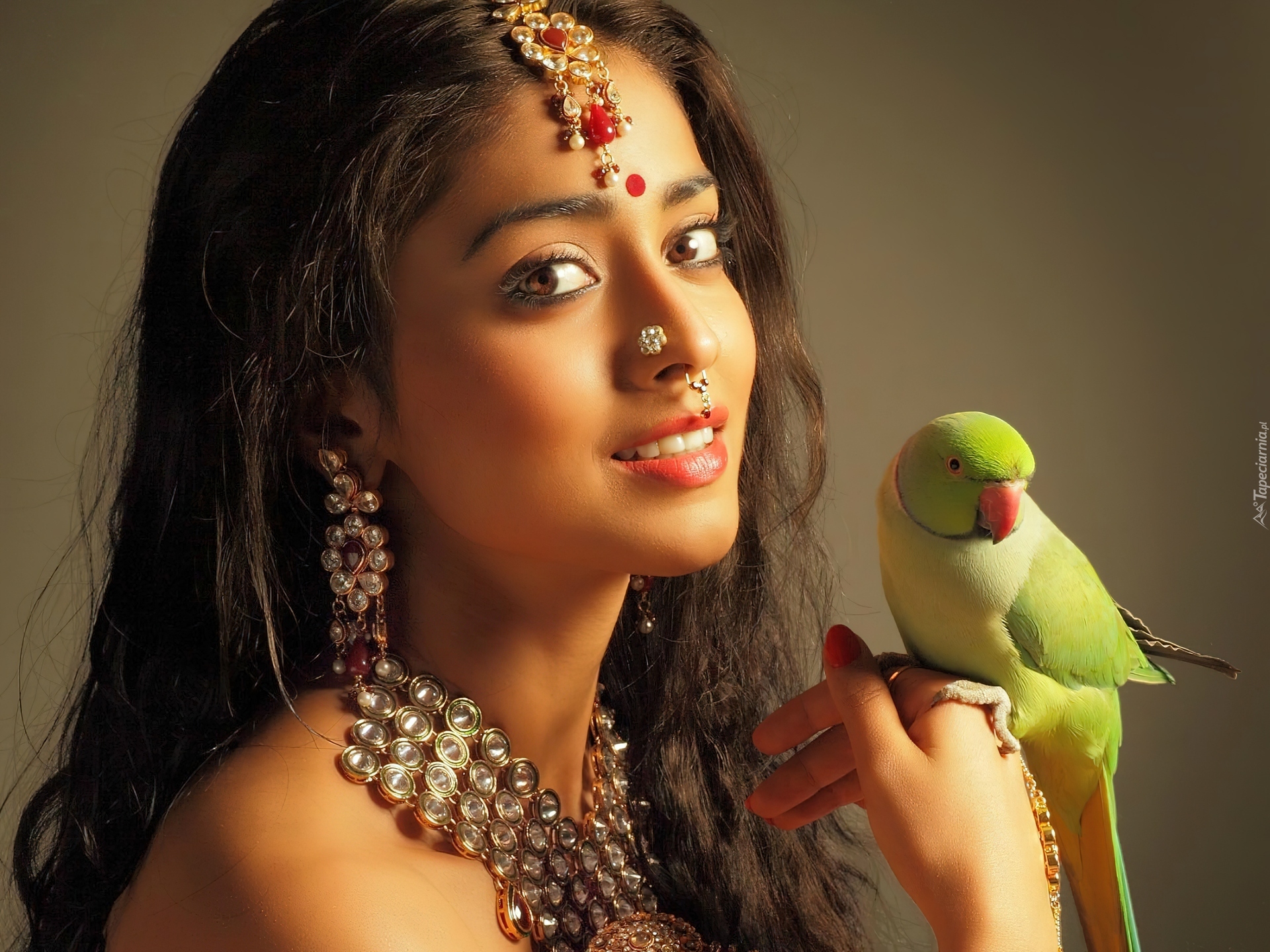 Edytor tapety: Piękna, Hinduska, Papuga, Biżuteria