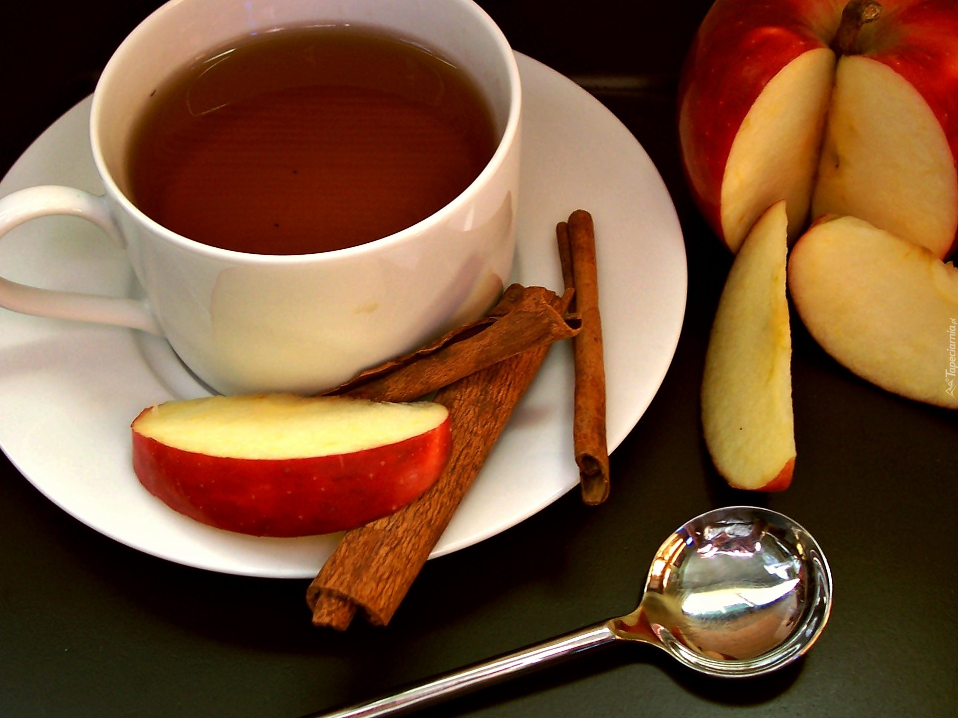 Edytor tapety: Biała, Filiżanka, Herbata, Cynamon, Jabłko