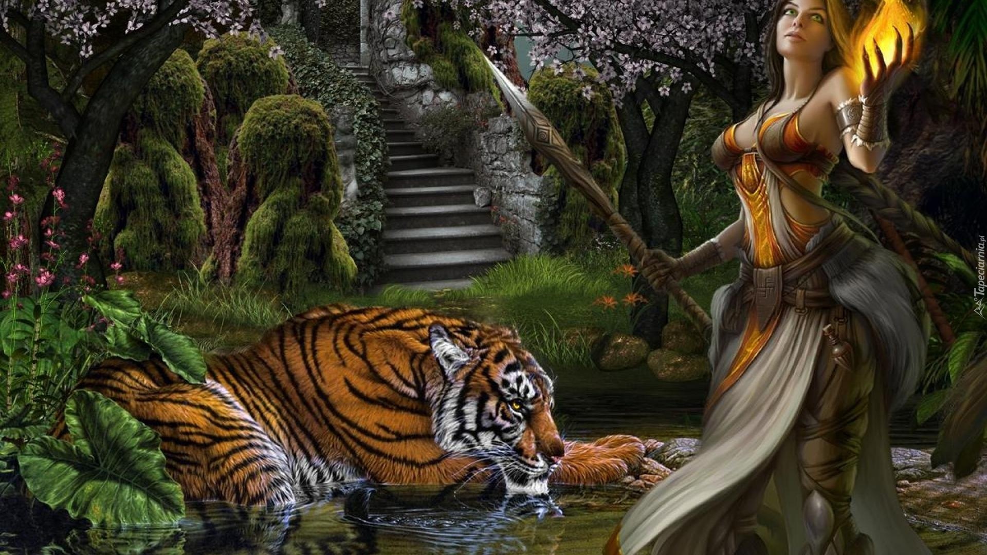 Edytor tapety: Kobieta, Tygrys, fantasy