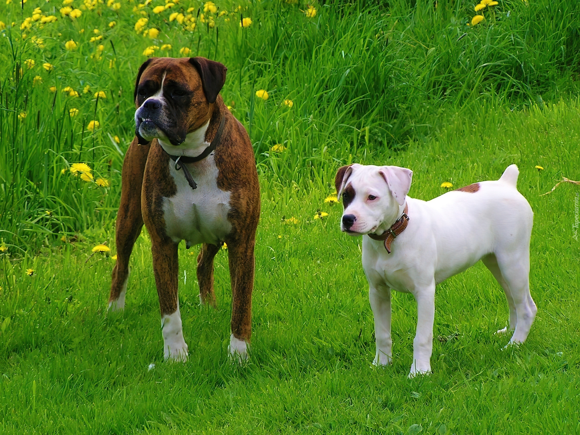 Edytor tapety: Dwa, Psy, Bokser, Amstaff
