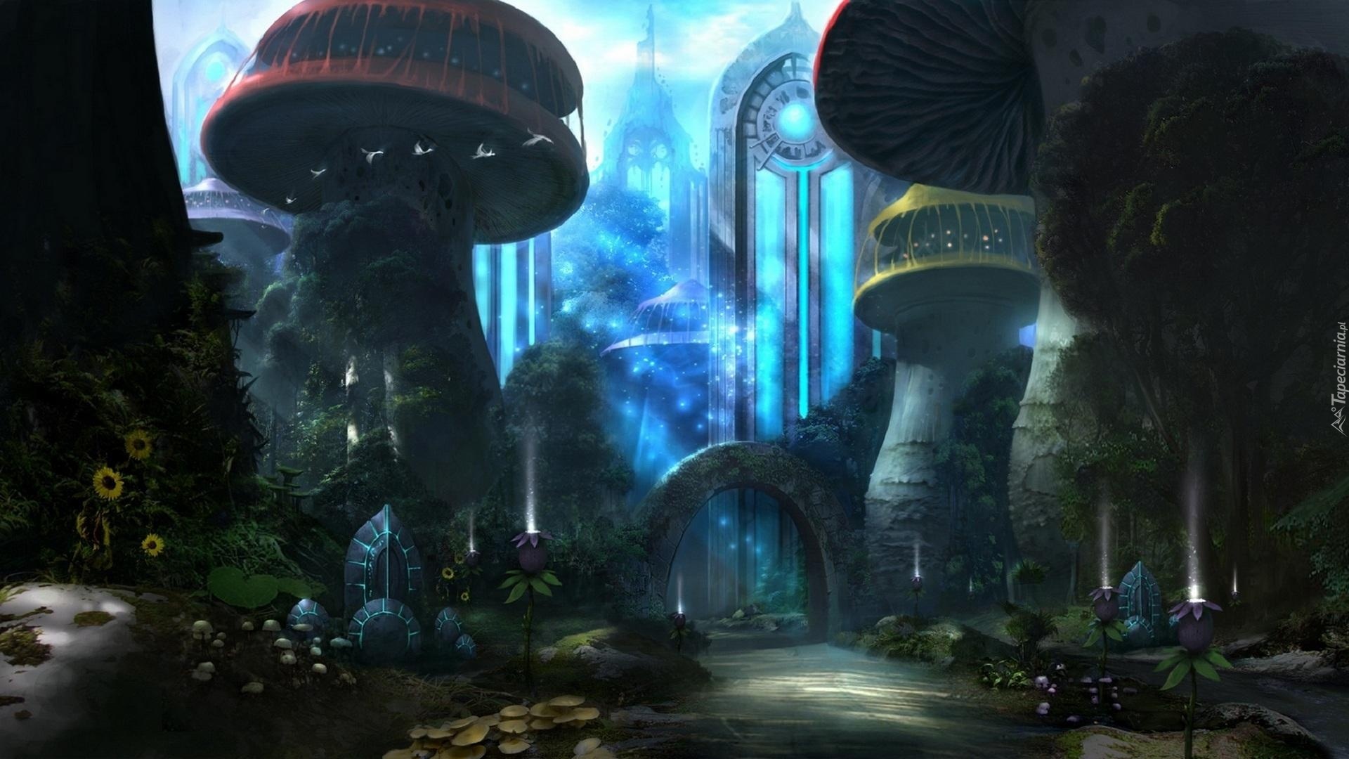 Edytor tapety: Fantasy, Budynki, Kwiaty