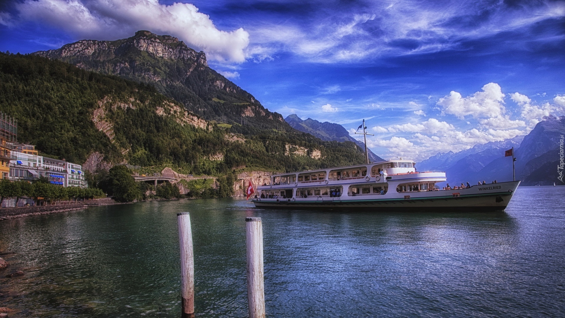 Edytor tapety: Statek, Wycieczkowy, Jezioro, Góry, Szwajcaria
