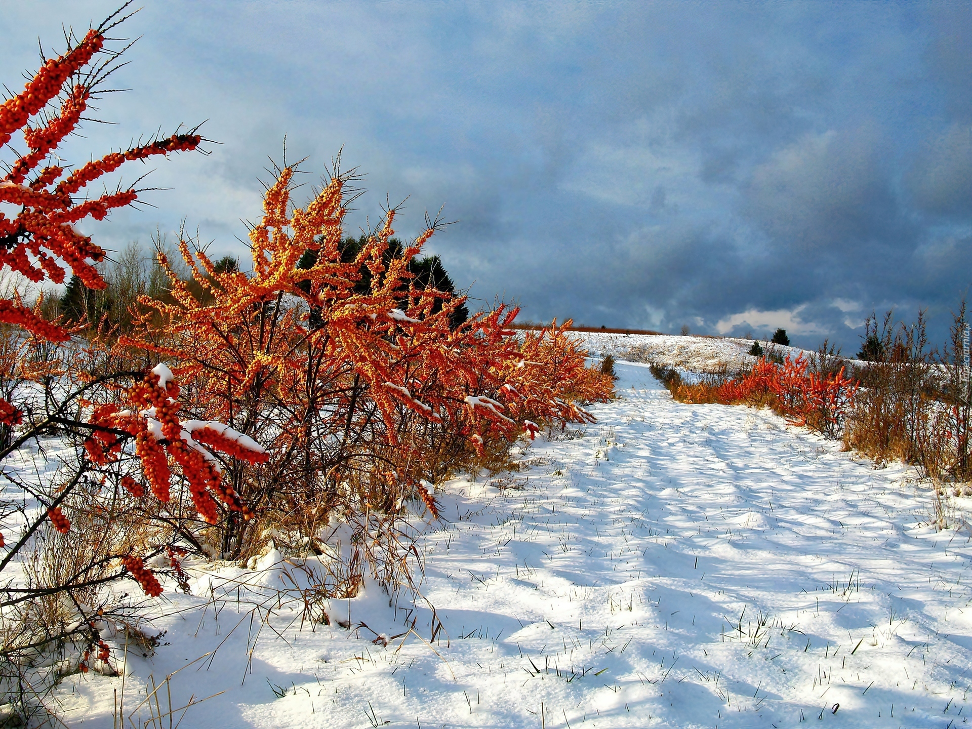 Edytor tapety: Droga, Rośliny, Zima