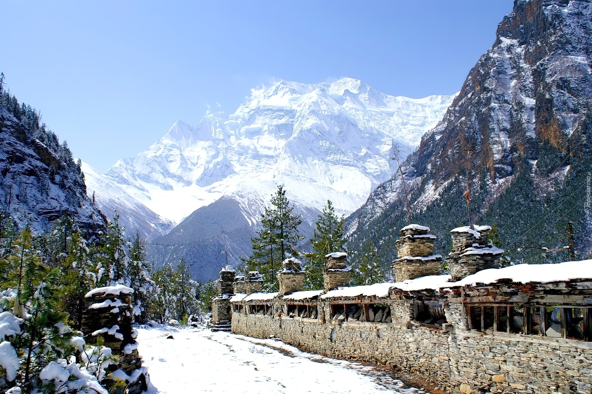Edytor tapety: Góry, Śnieg, Płot, Nepal