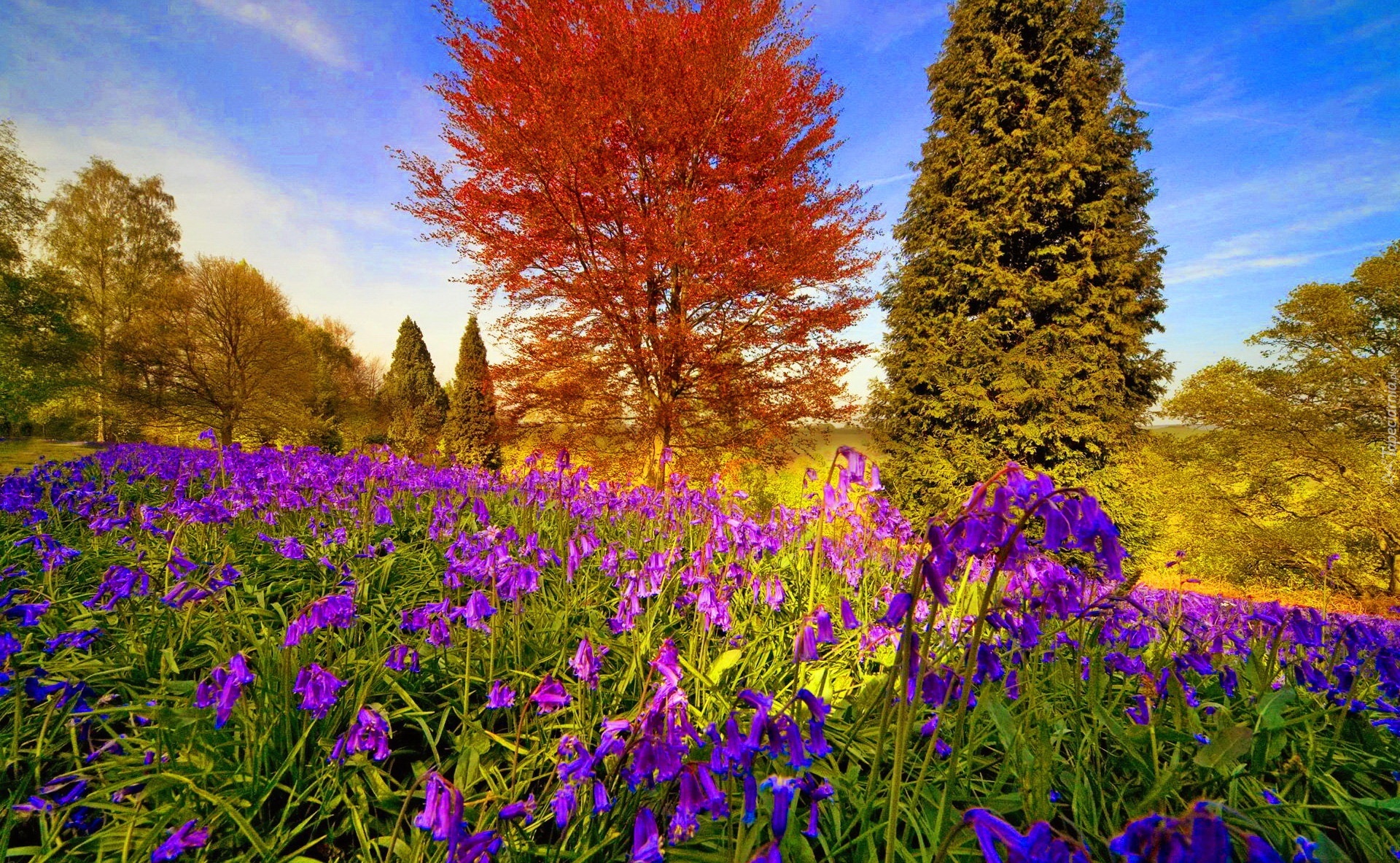 Edytor tapety: Łąka, Kwiatki, Drzewa