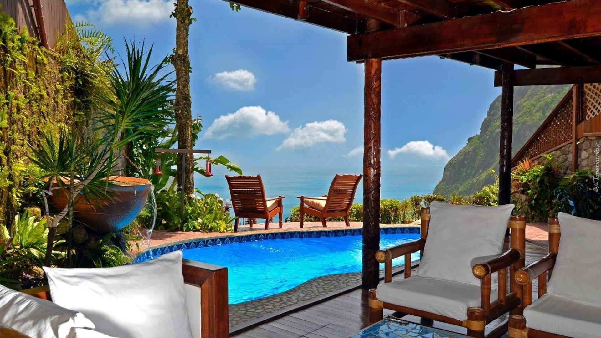 Edytor tapety: Hotel, Basen, Saint Lucia, Karaiby
