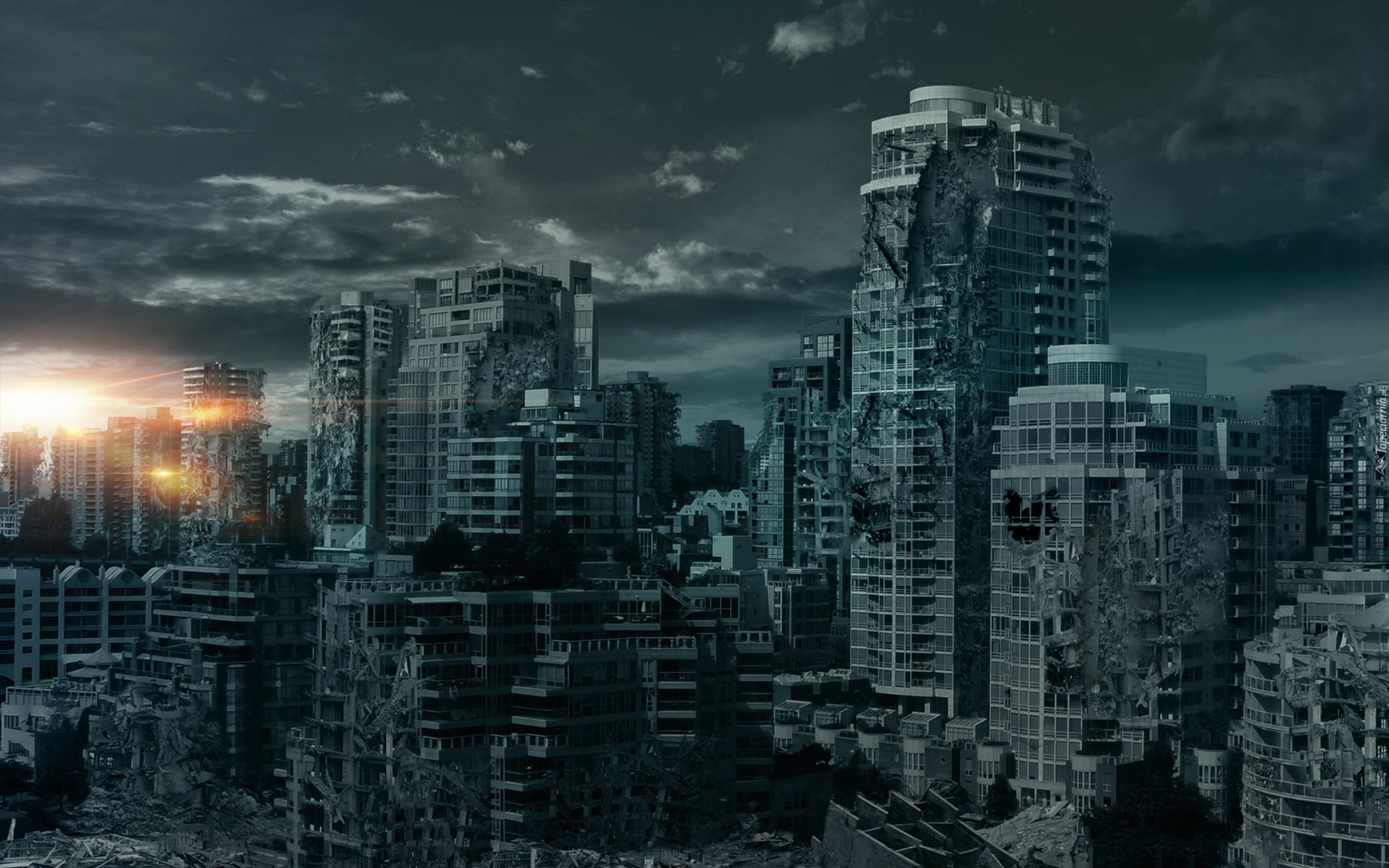 Edytor tapety: Drapacze, Chmur, Przebijające, Słońce