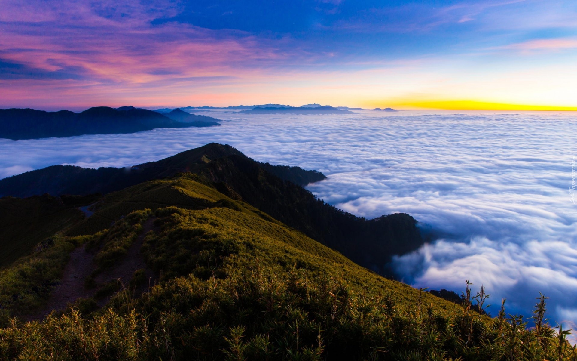 Edytor tapety: Góry, Ścieżka, Chmury, Wschód, Słońca