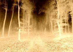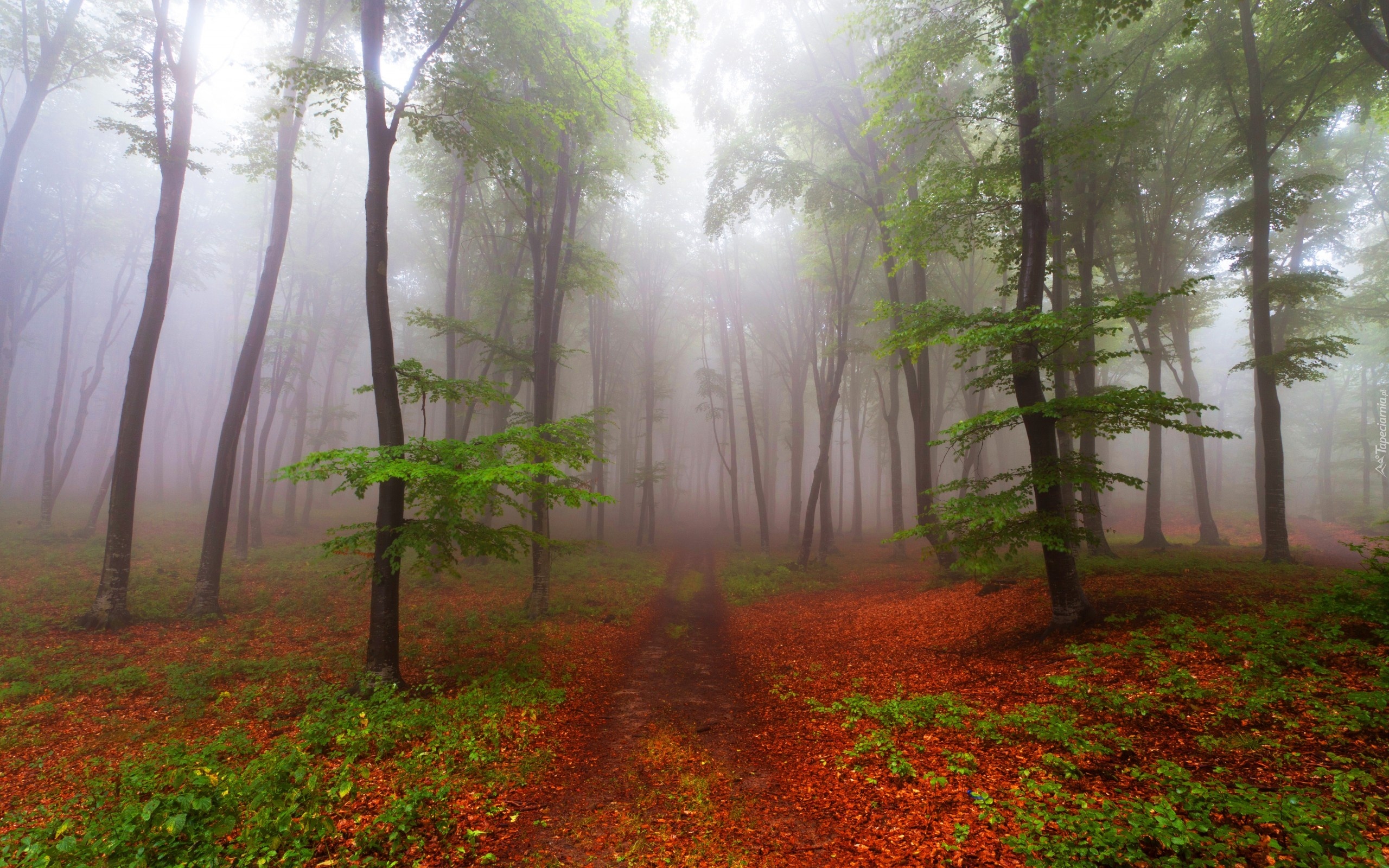 Edytor tapety: Las, Ścieżka, Drzewa, Liście, Mgła, Jesień