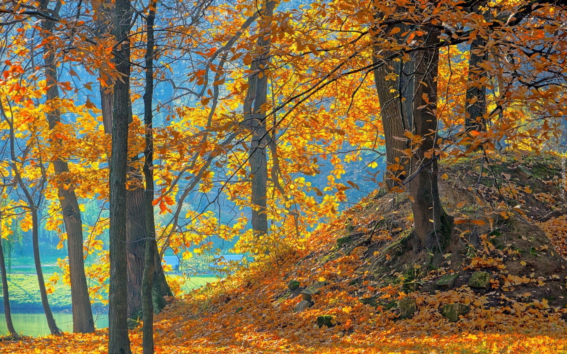 Edytor tapety: Park, Rzeka, Drzewa, Liście, Jesień