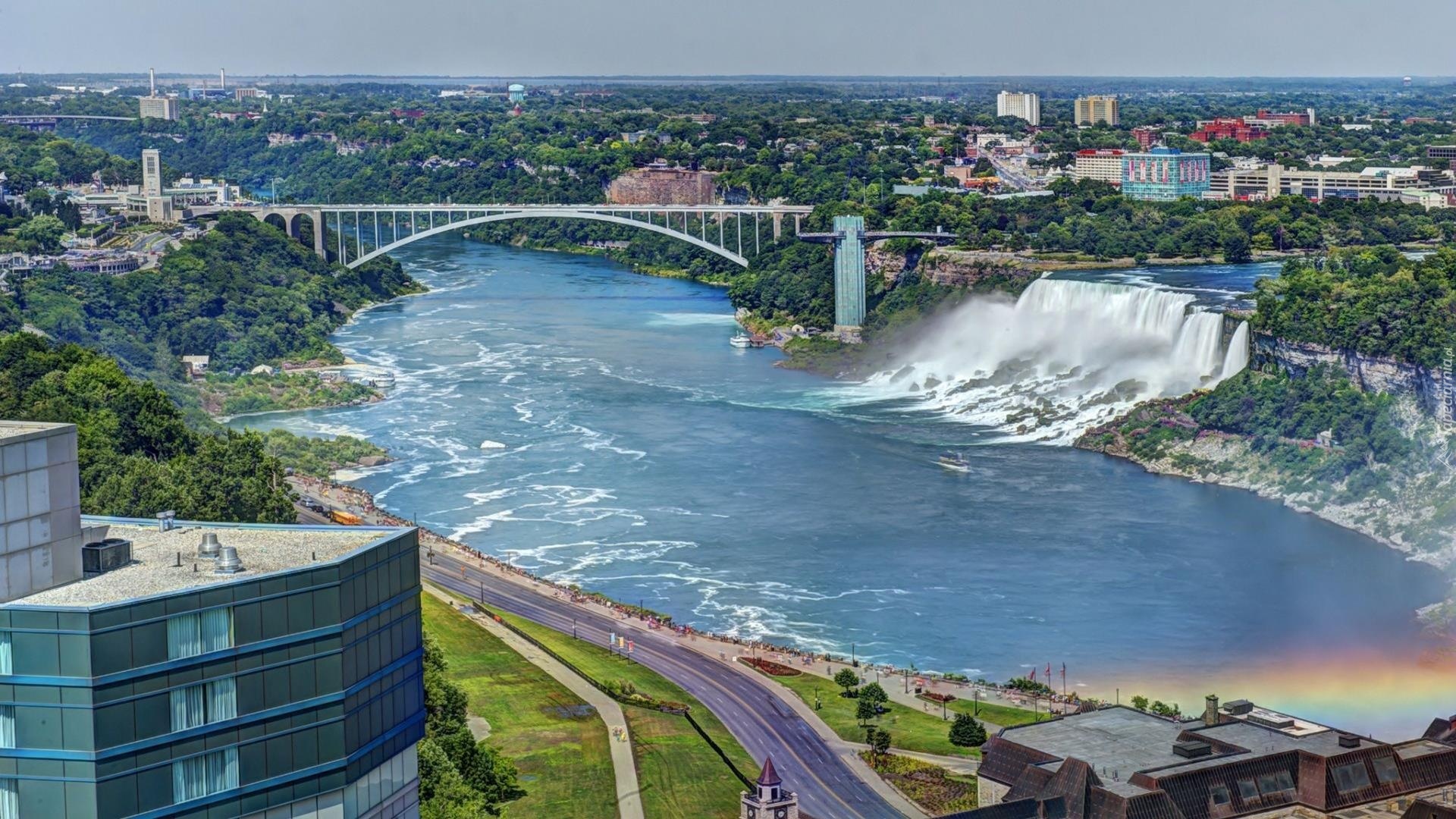 Edytor tapety: Budynki, Most, Wodospad, Rzeka