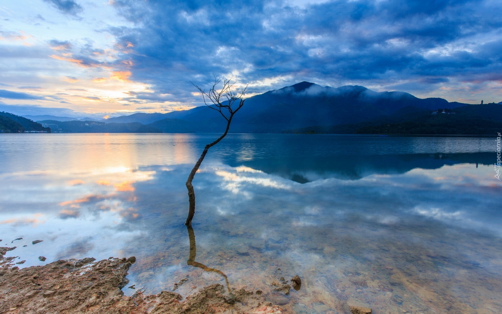 Edytor tapety: Jezioro, Chmury, Góry, Drzewo