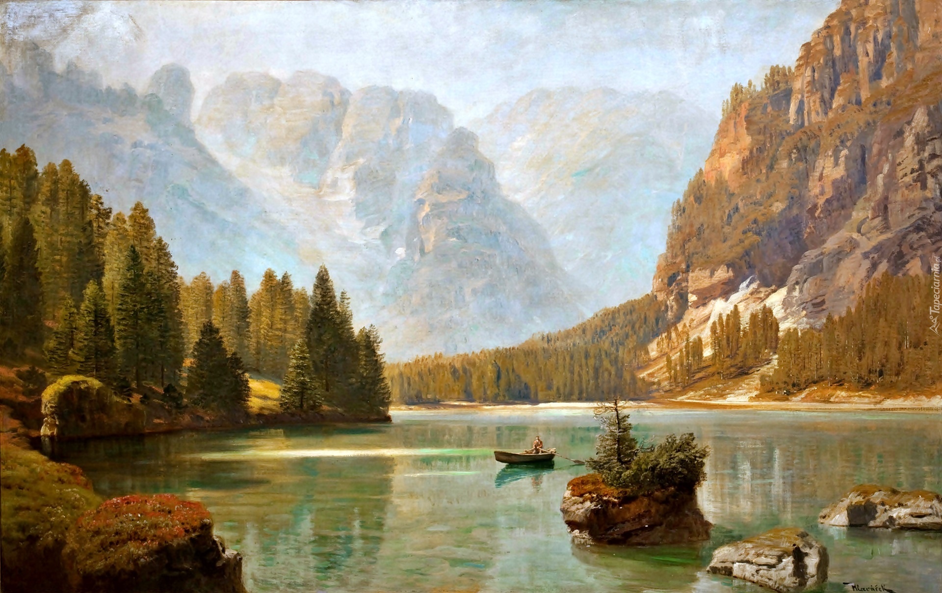 Edytor tapety: Jezioro, Mężczyzna, W Łódce