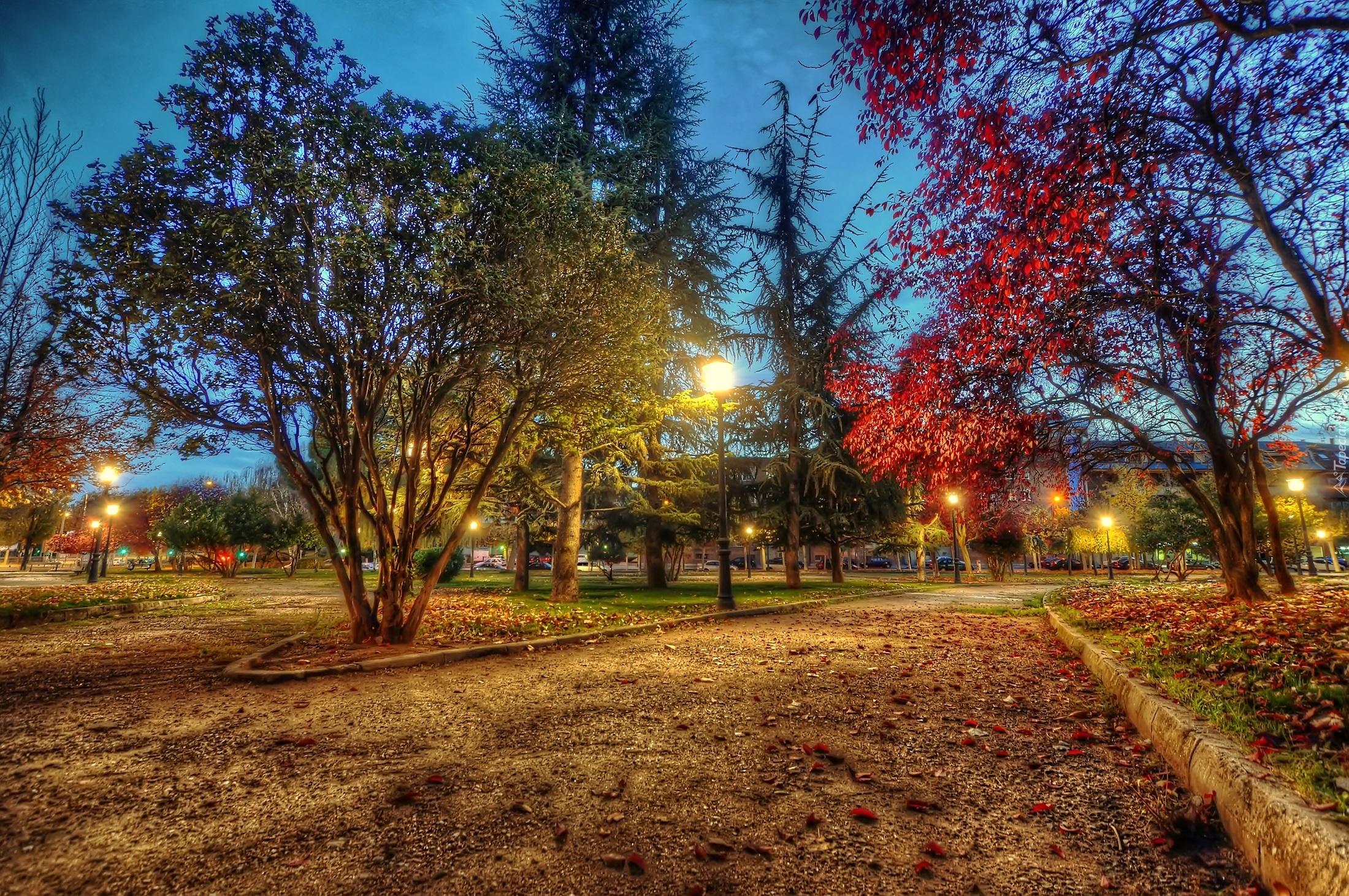 Edytor tapety: Jesień, Park, Oświetlone, Alejki, Opadłe, Liście