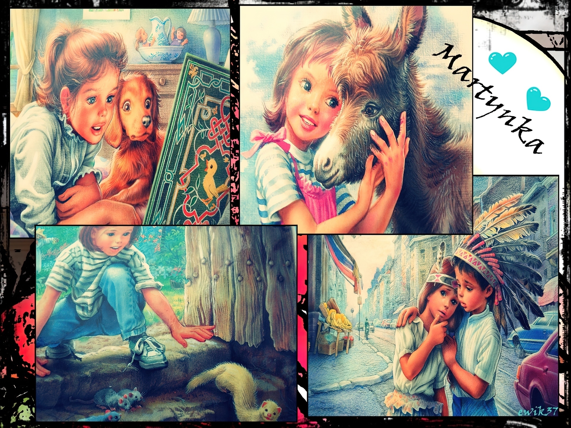 Edytor tapety: Dziewczynka, Pies, Osioł, Fretka, Chłopiec, Grafika