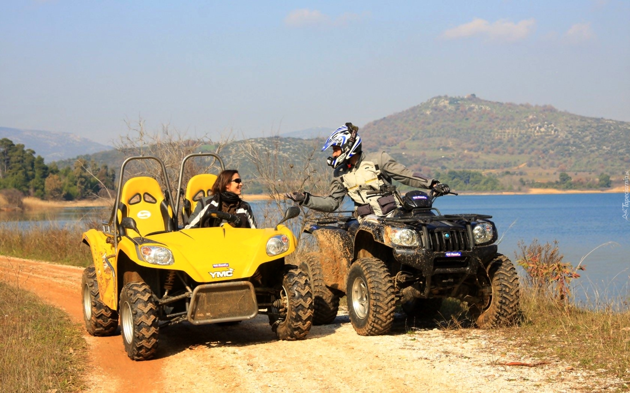 Edytor tapety: Quady, Kobieta, Mężczyzna, Droga, Jezioro