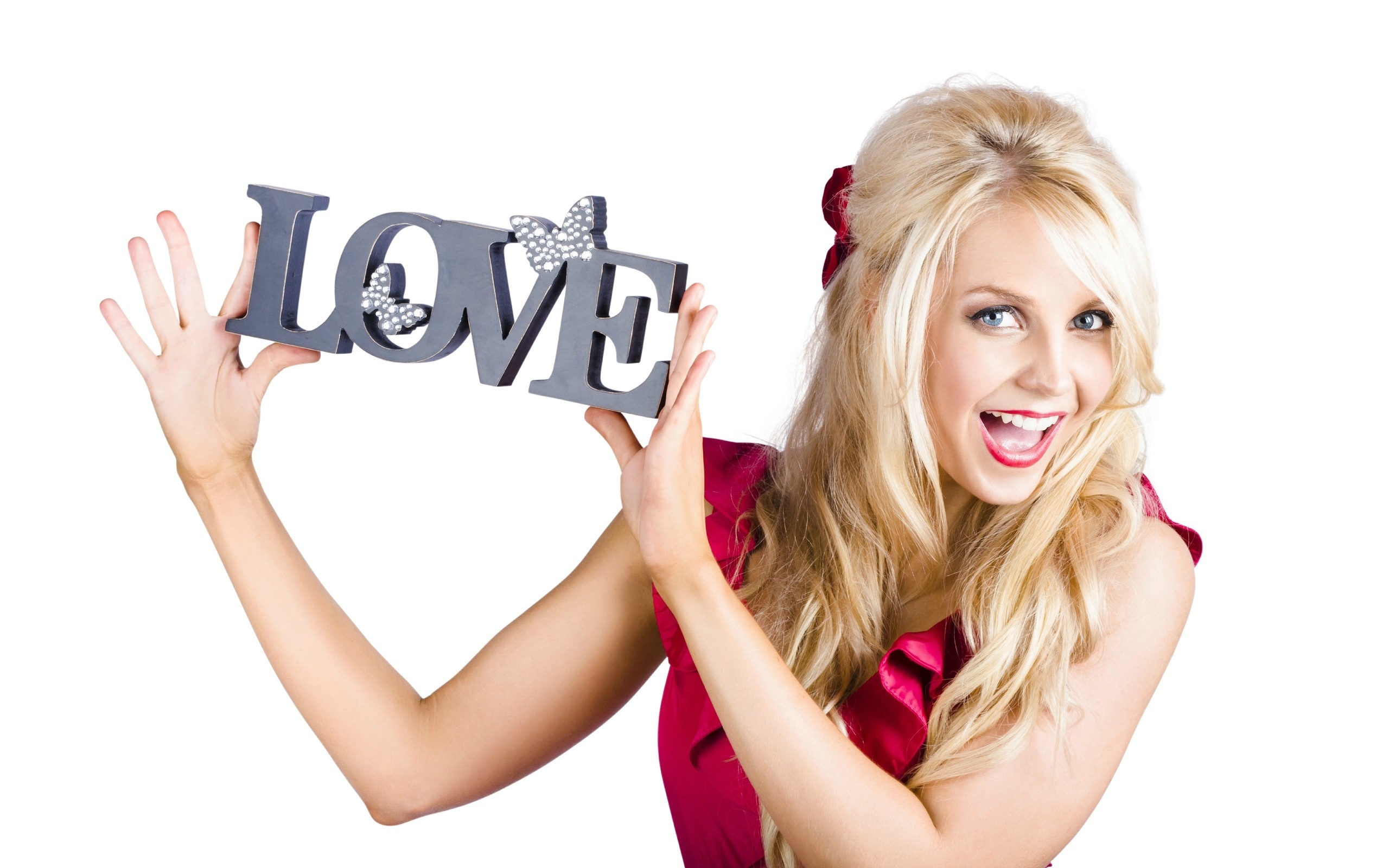Edytor tapety: Radosna, Blondynka, Makijaż, Miłość, Walentynki