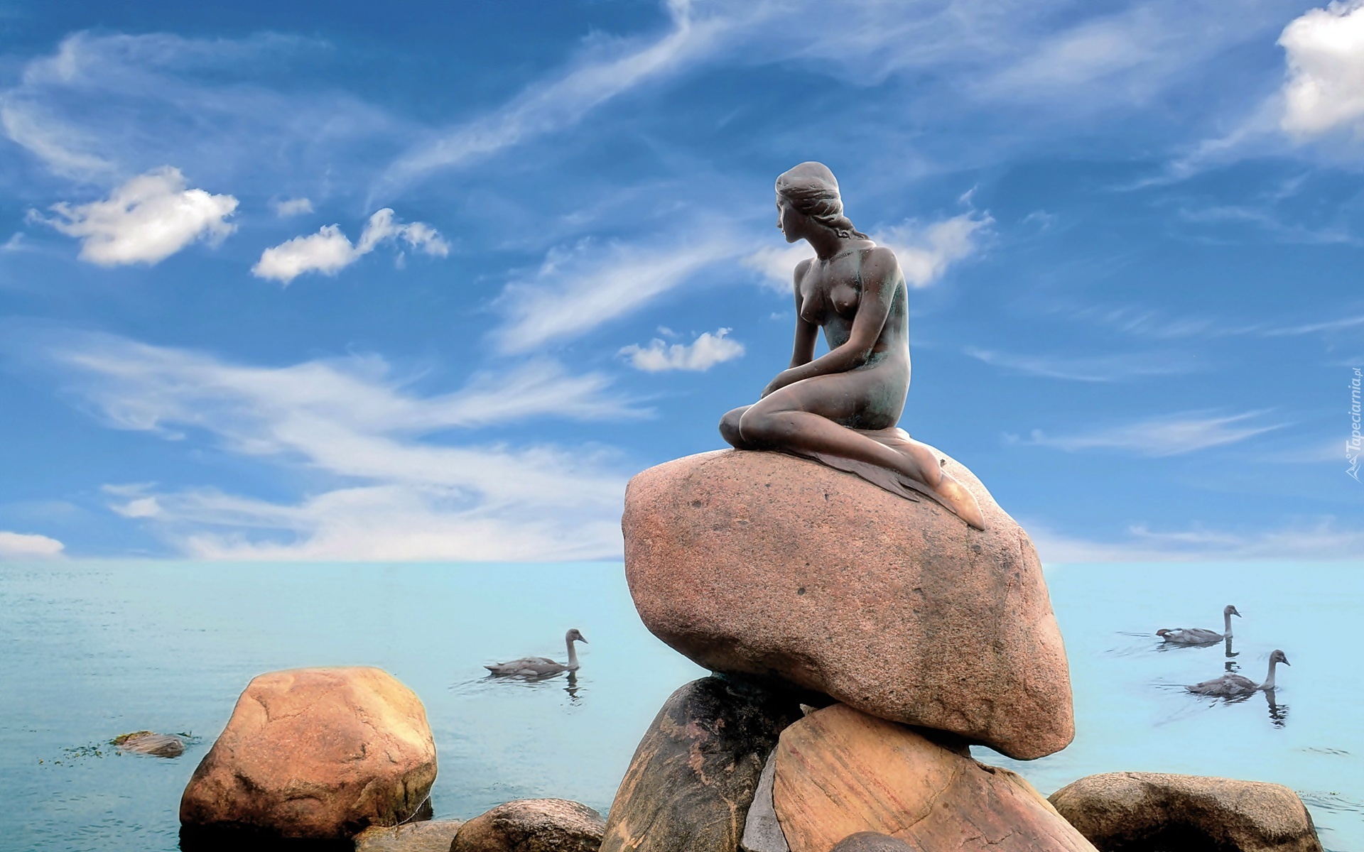 Edytor tapety: Dania, Kopenhaga, Posąg, Mała Syrenka, Kamienie