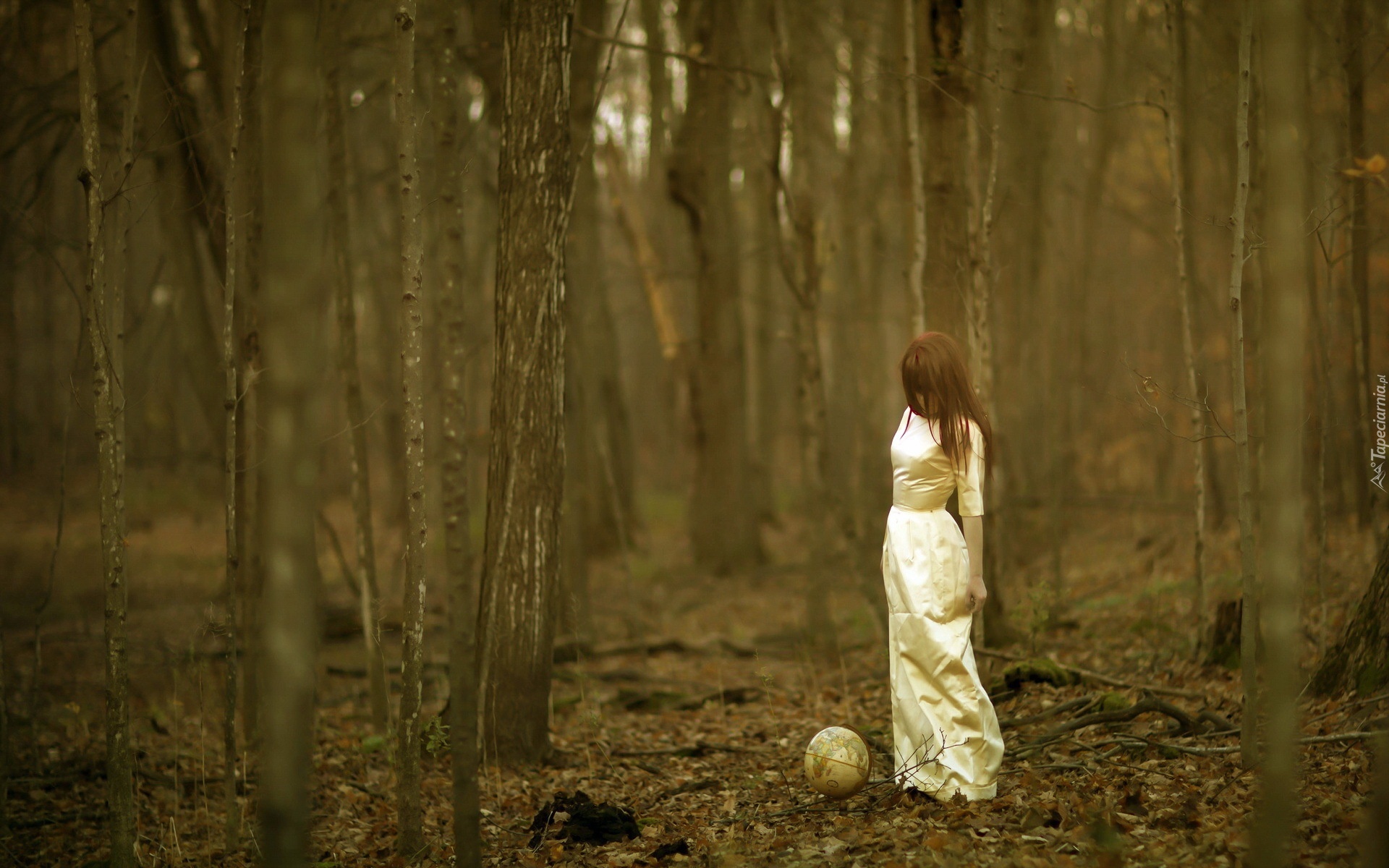 Edytor tapety: Las, Kobieta, Globus