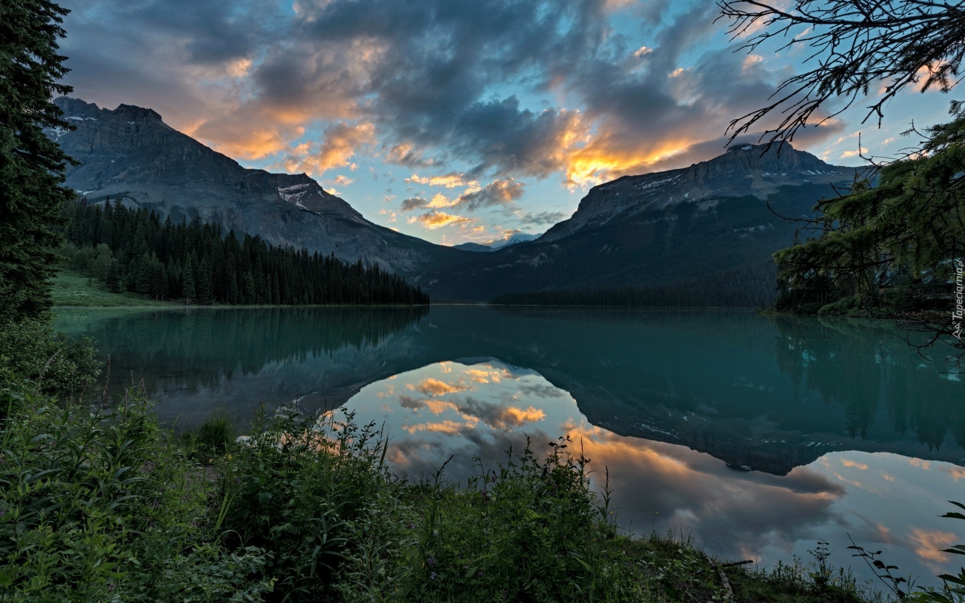 Edytor tapety: Jezioro, Góry, Chmury, Odbicie