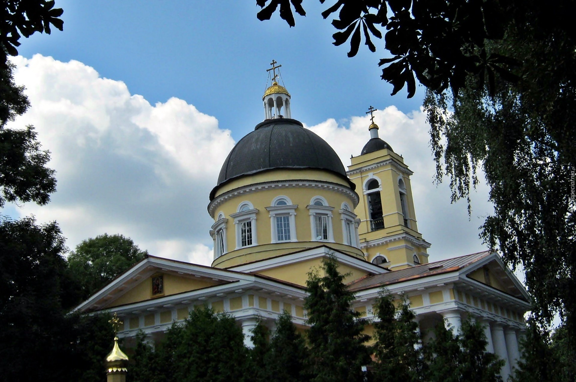 Edytor tapety: Cerkiew, Drzewa, Obłoki