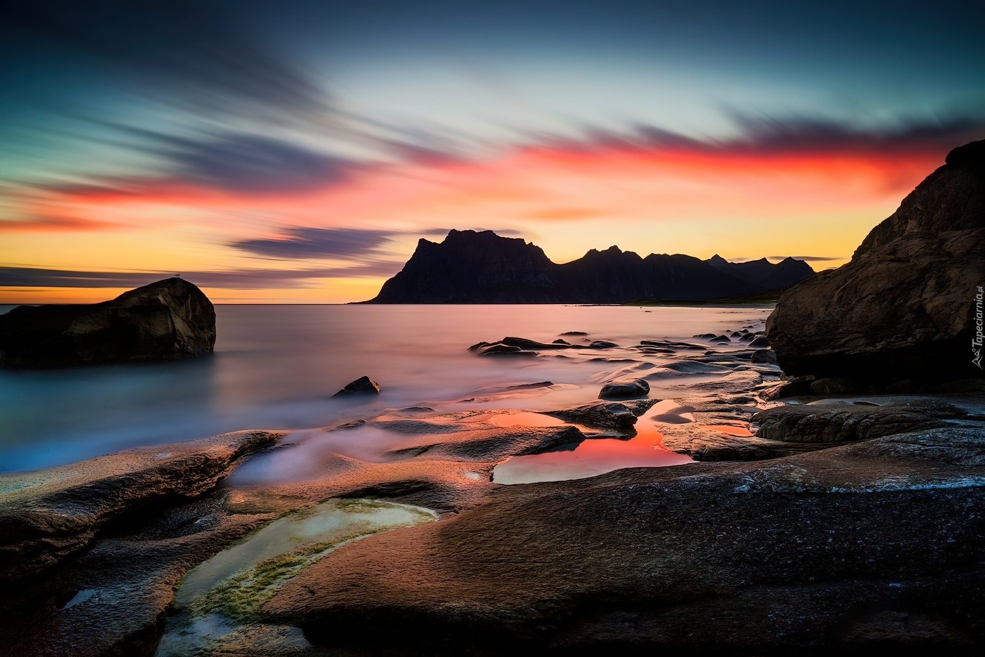 Edytor tapety: Zachód, Słońca, Morze, Skały