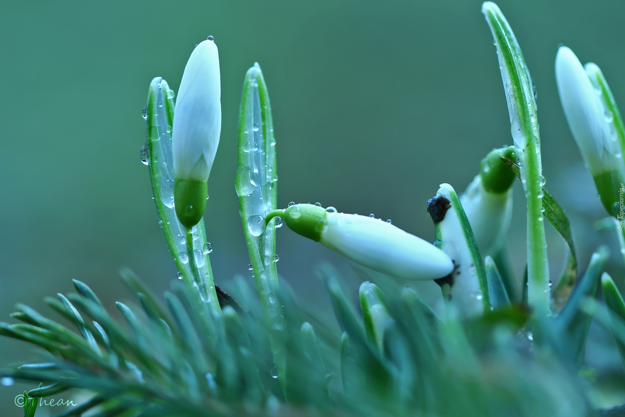 Edytor tapety: Przebiśniegi, Pąki, Krople