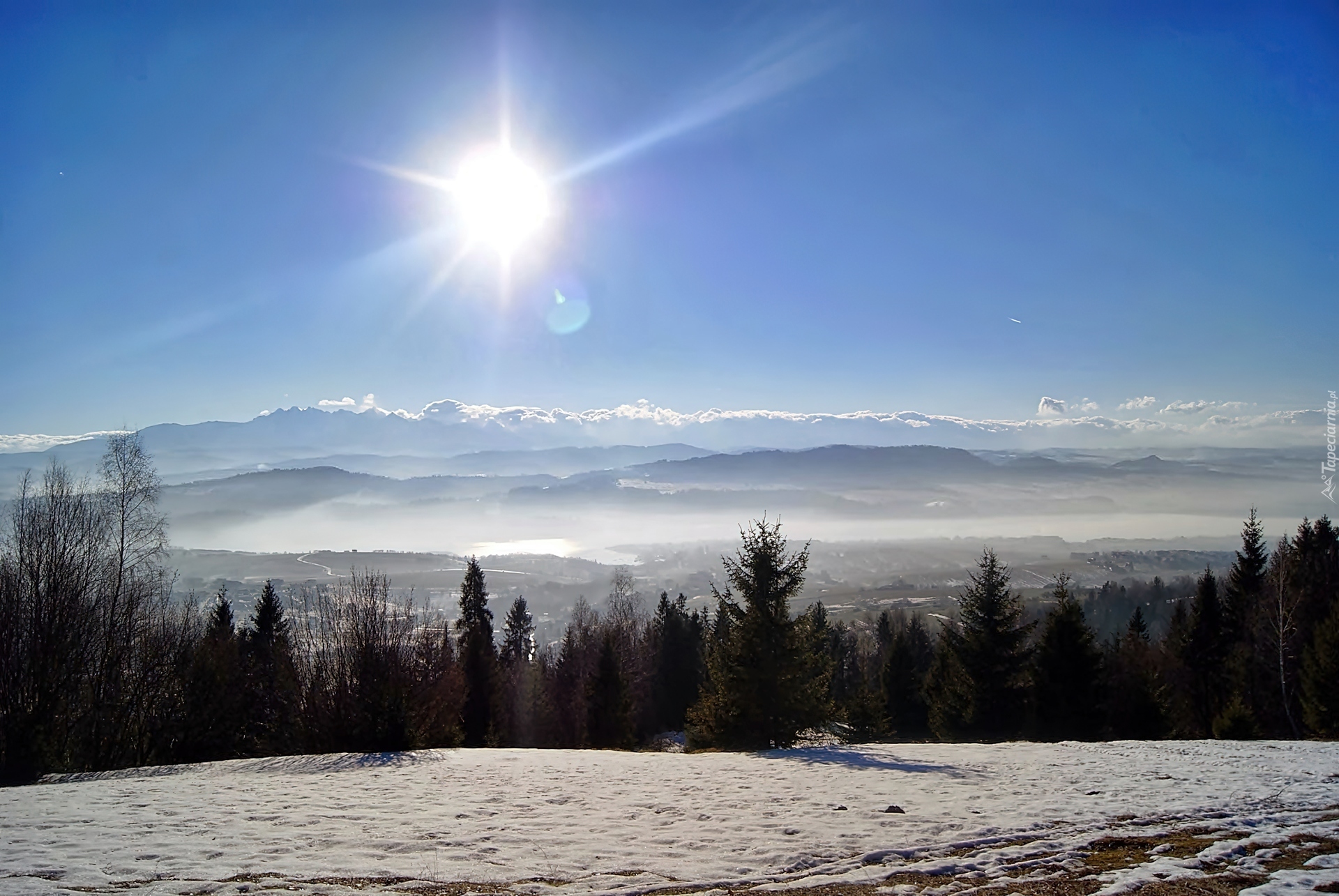 Edytor tapety: Góry, Las, Pole, Promienie, Słońca, Rozmycie