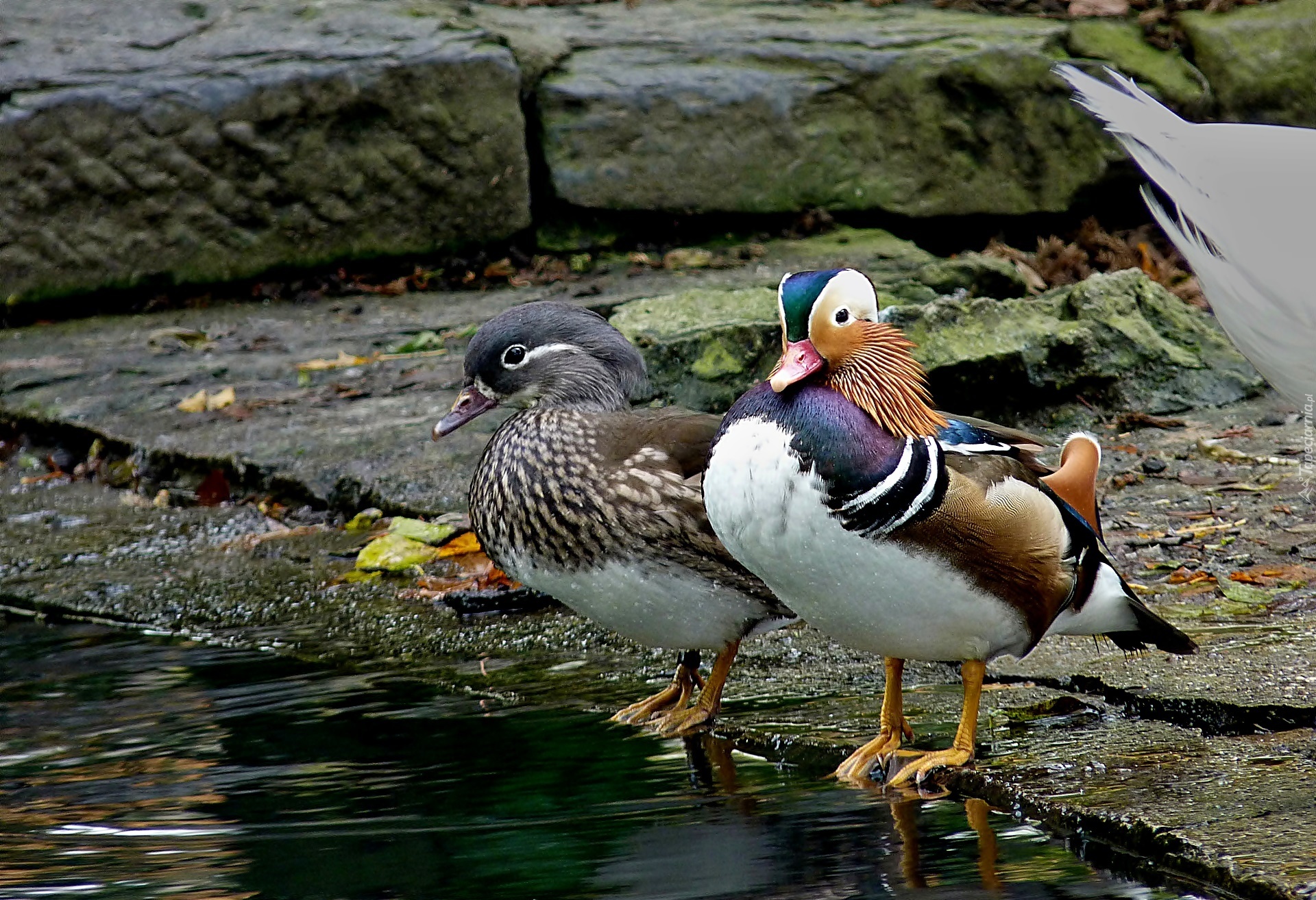 Edytor tapety: Kamienie, Staw, Para, Mandarynek