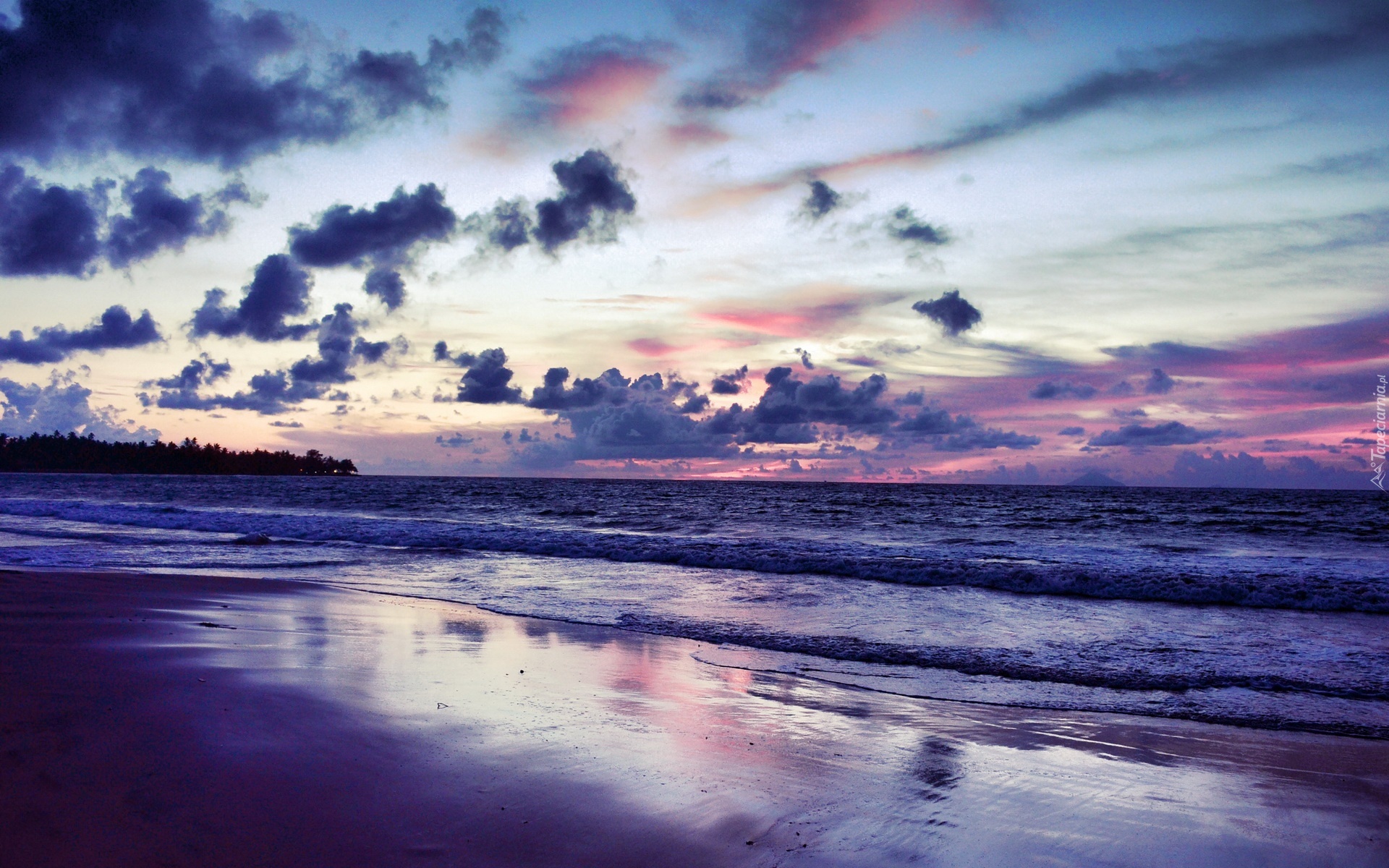Edytor tapety: Plaża, Chmury, Fale, Morze