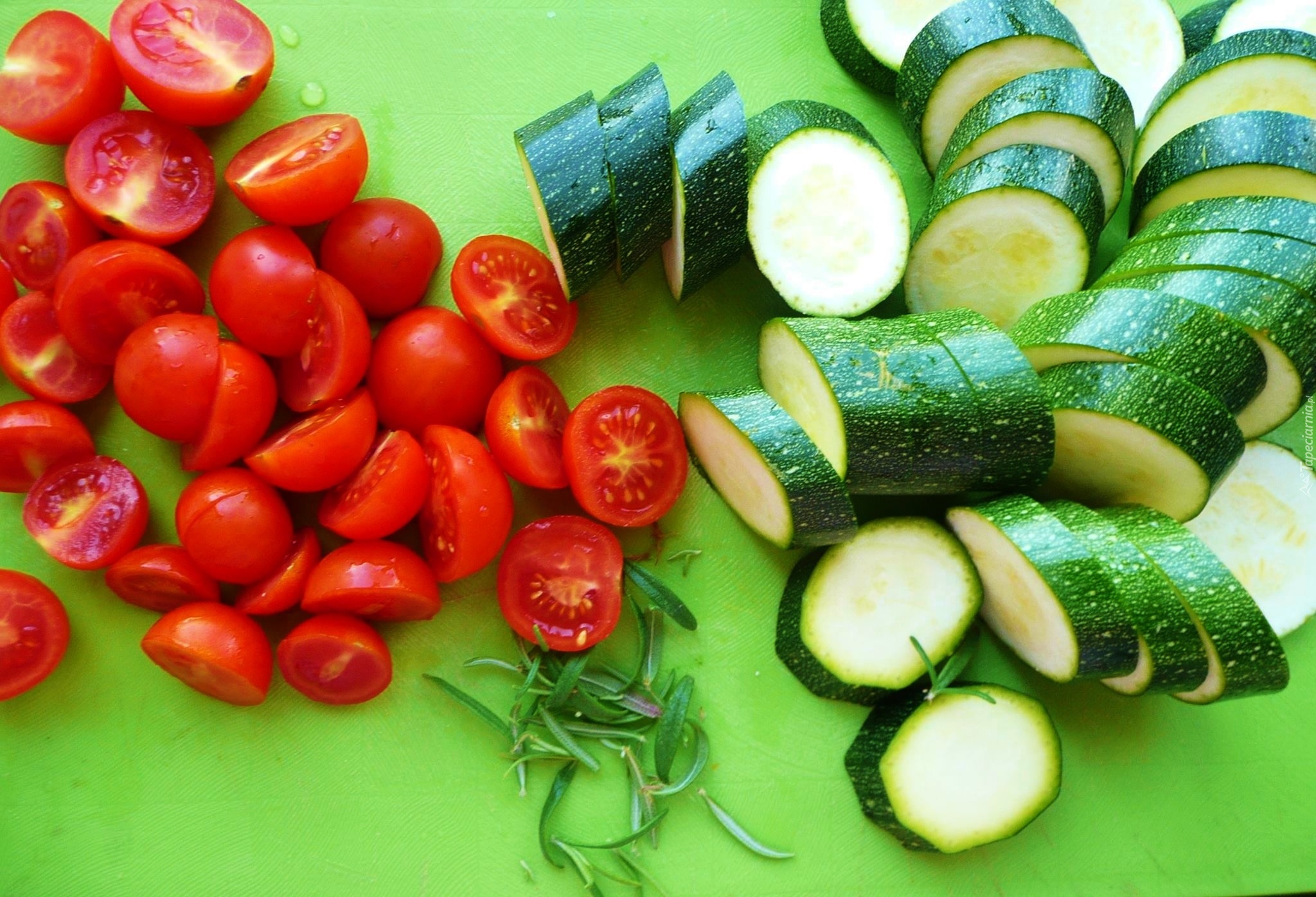 Edytor tapety: Pokrojone, Pomidory, Cukinia