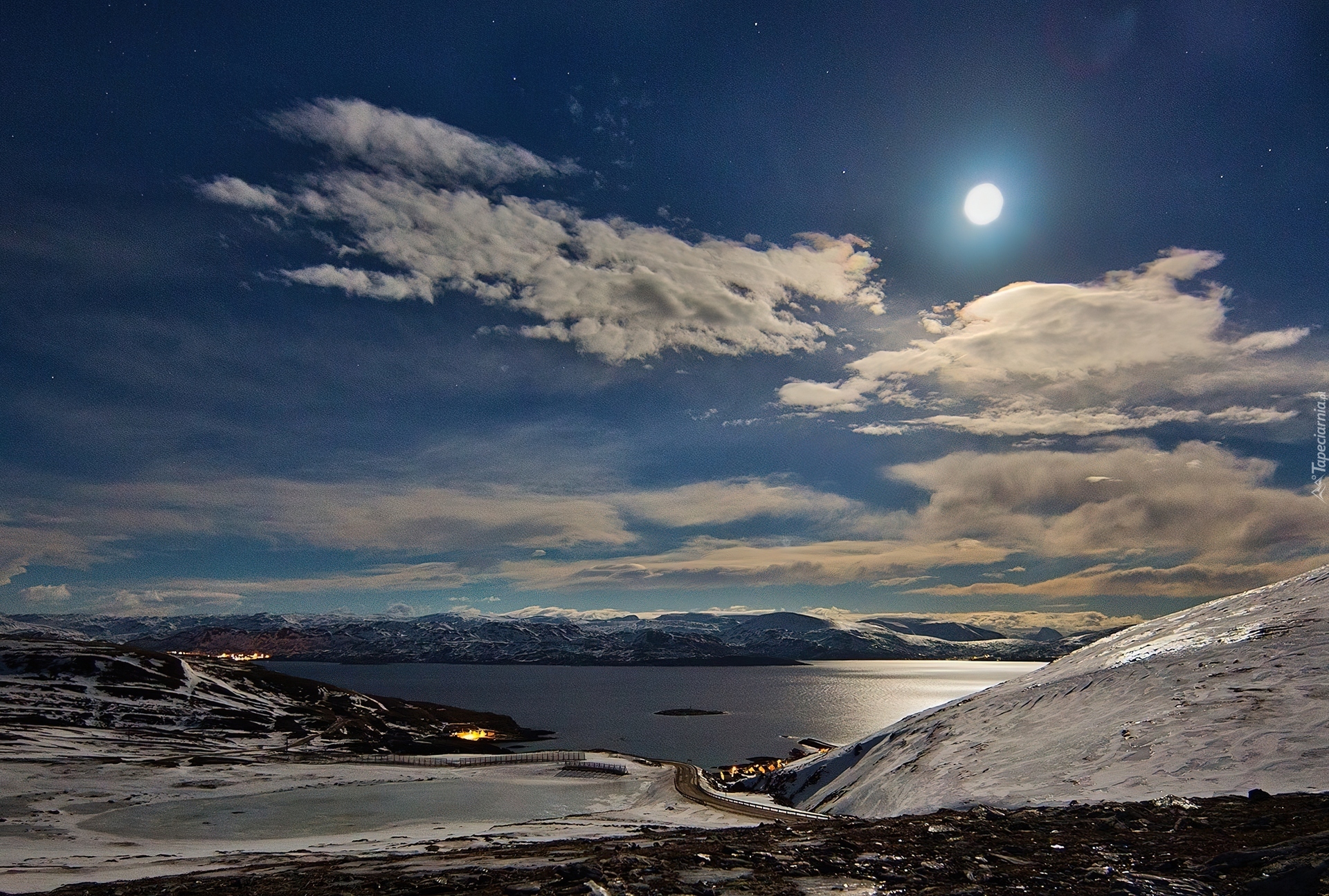 Edytor tapety: Jezioro, Noc, Księżyc, Góry