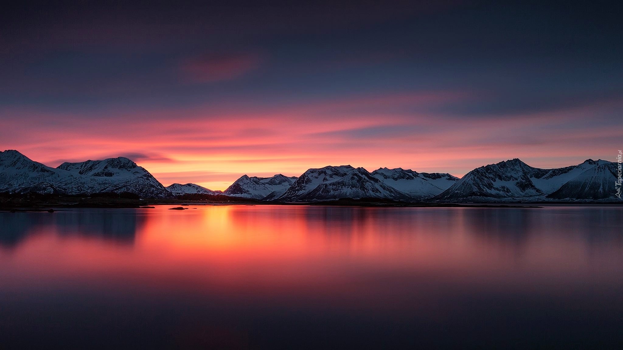 Edytor tapety: Zachód, Słońca, Jezioro, Góry