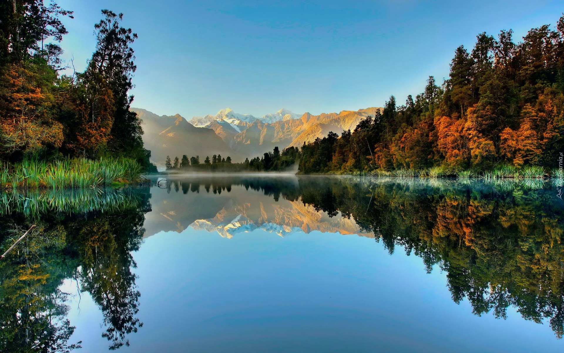 Edytor tapety: Jezioro, Lasy, Góry, Mgła, Jesień