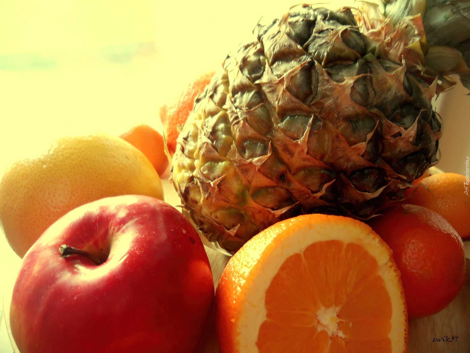 Edytor tapety: Owoce, Jabłko, Pomarańcz, Ananas, Mandarynka