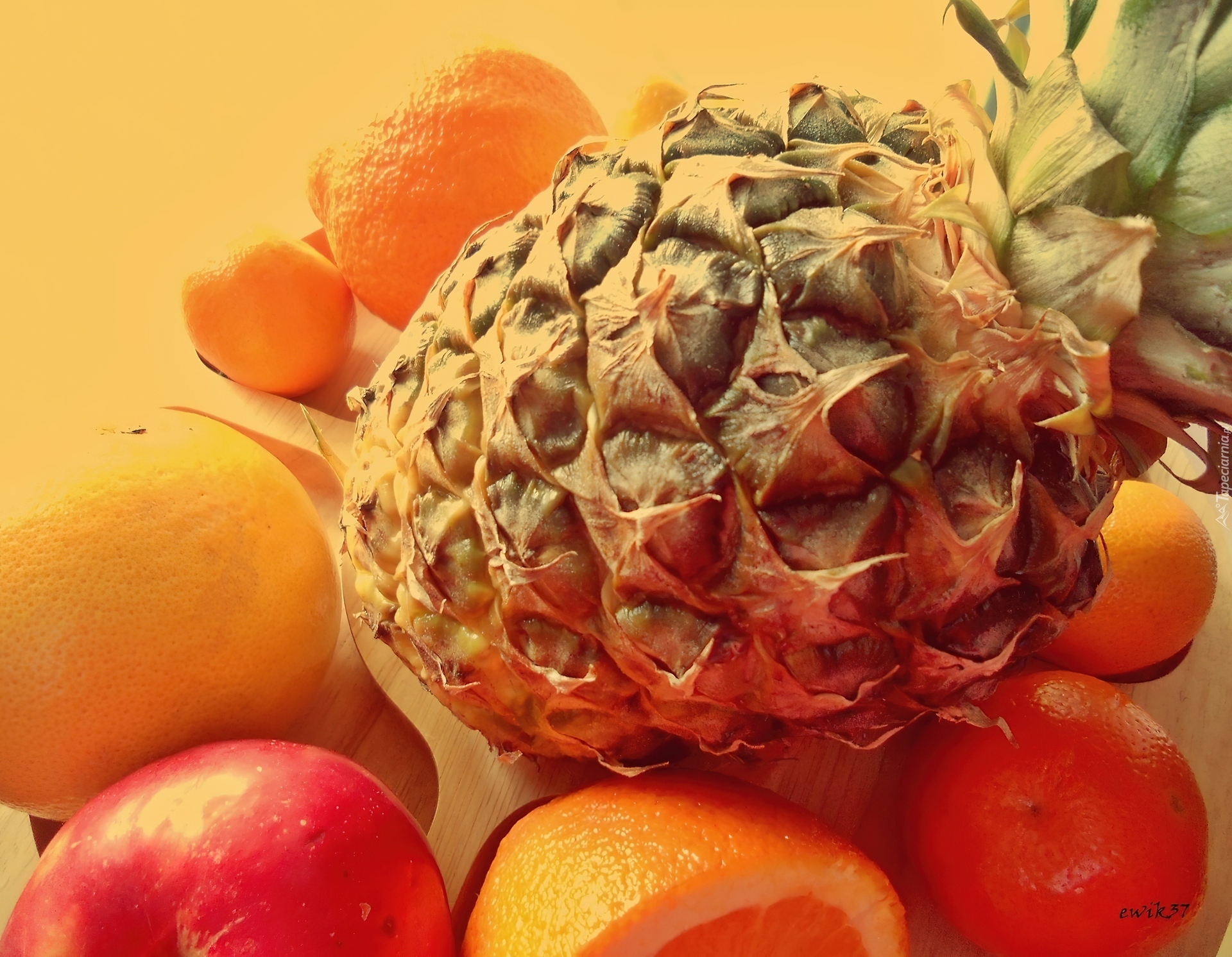 Edytor tapety: Owoce, Ananas, Grejpfrut, Mandarynka, Jabłko