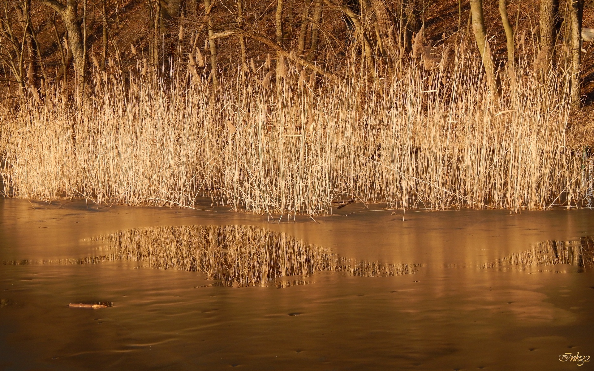 Edytor tapety: Jezioro, Trzcina, Lód, Odbicie