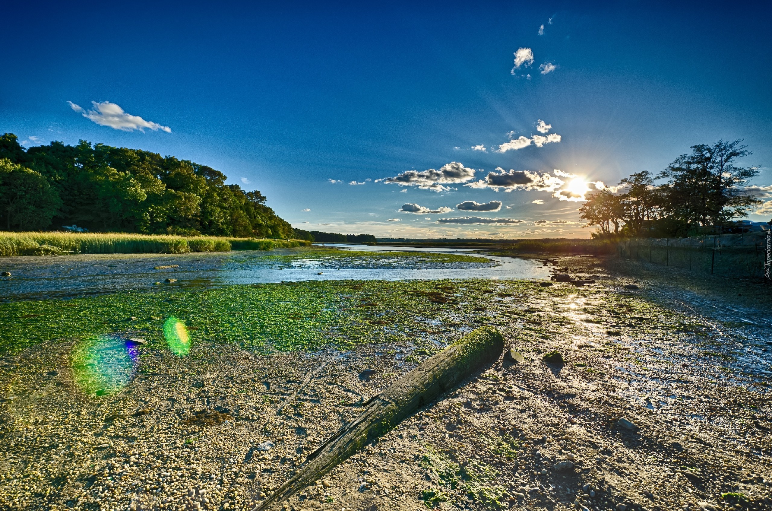 Edytor tapety: Rzeczka, Las, Słońce