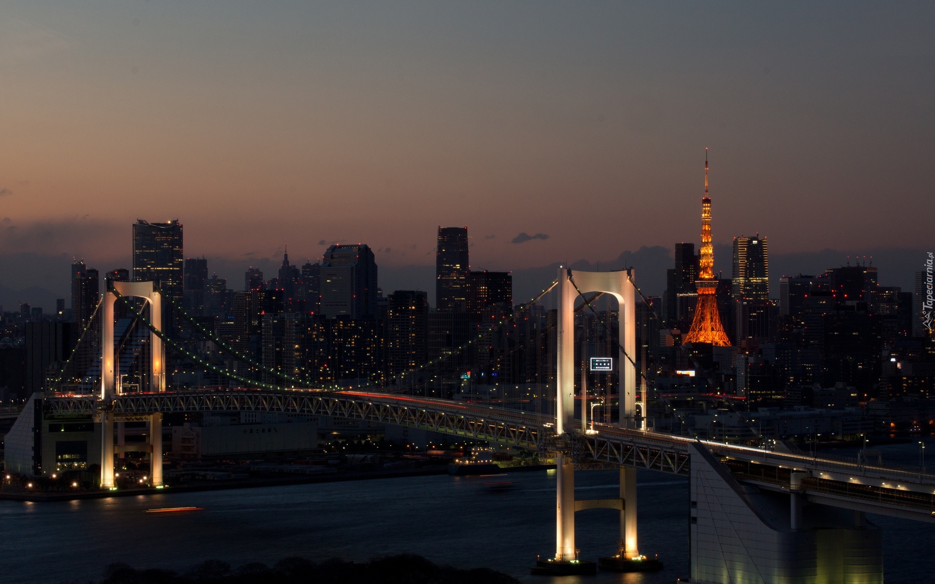 Edytor tapety: Most, Wieża, Wieżowce, Tokio, Panorama, Noc