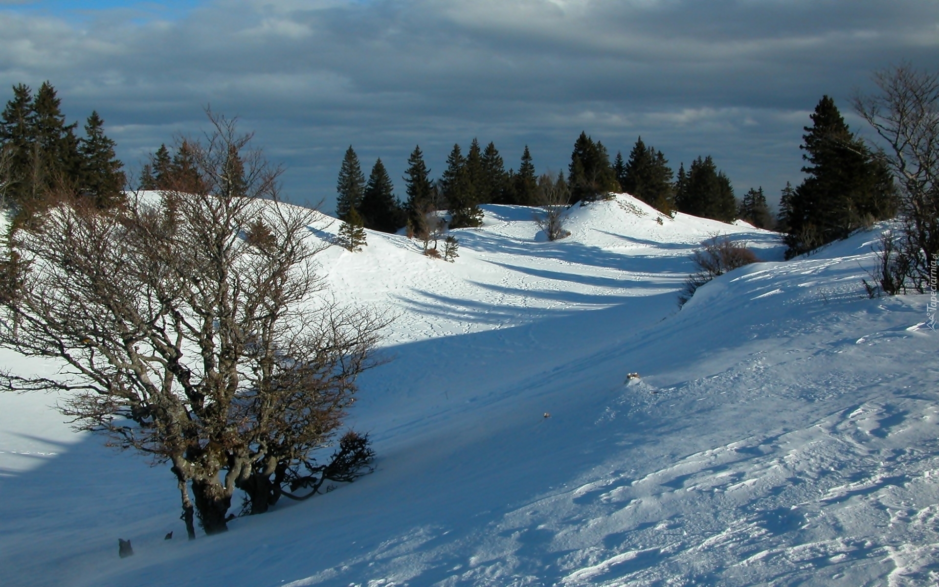 Edytor tapety: Pagórki, Drzewa, Światło, Cień