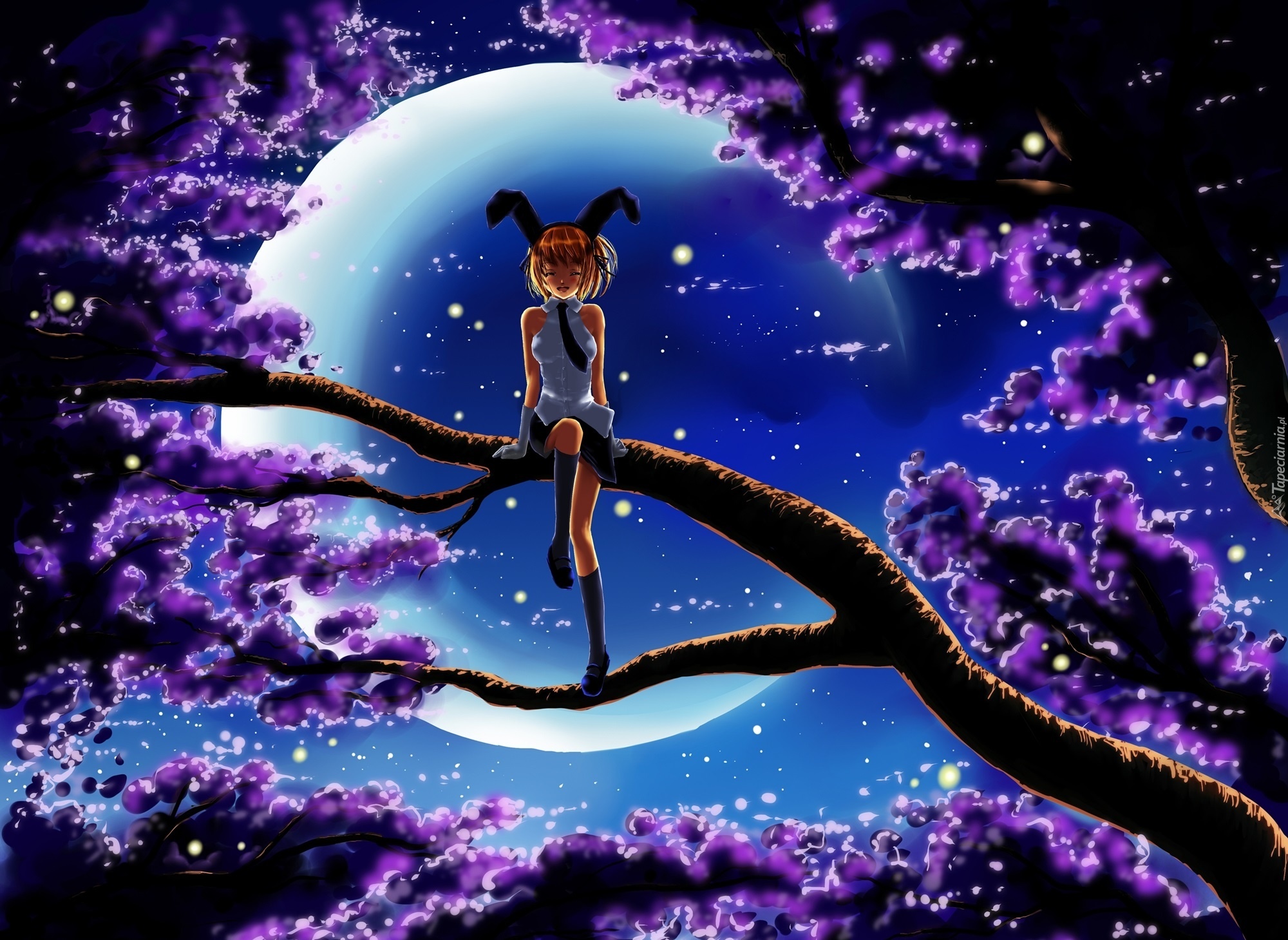 Edytor tapety: Chibionpu, Dziewczyna, Księżyc, Drzewa, Owocowe
