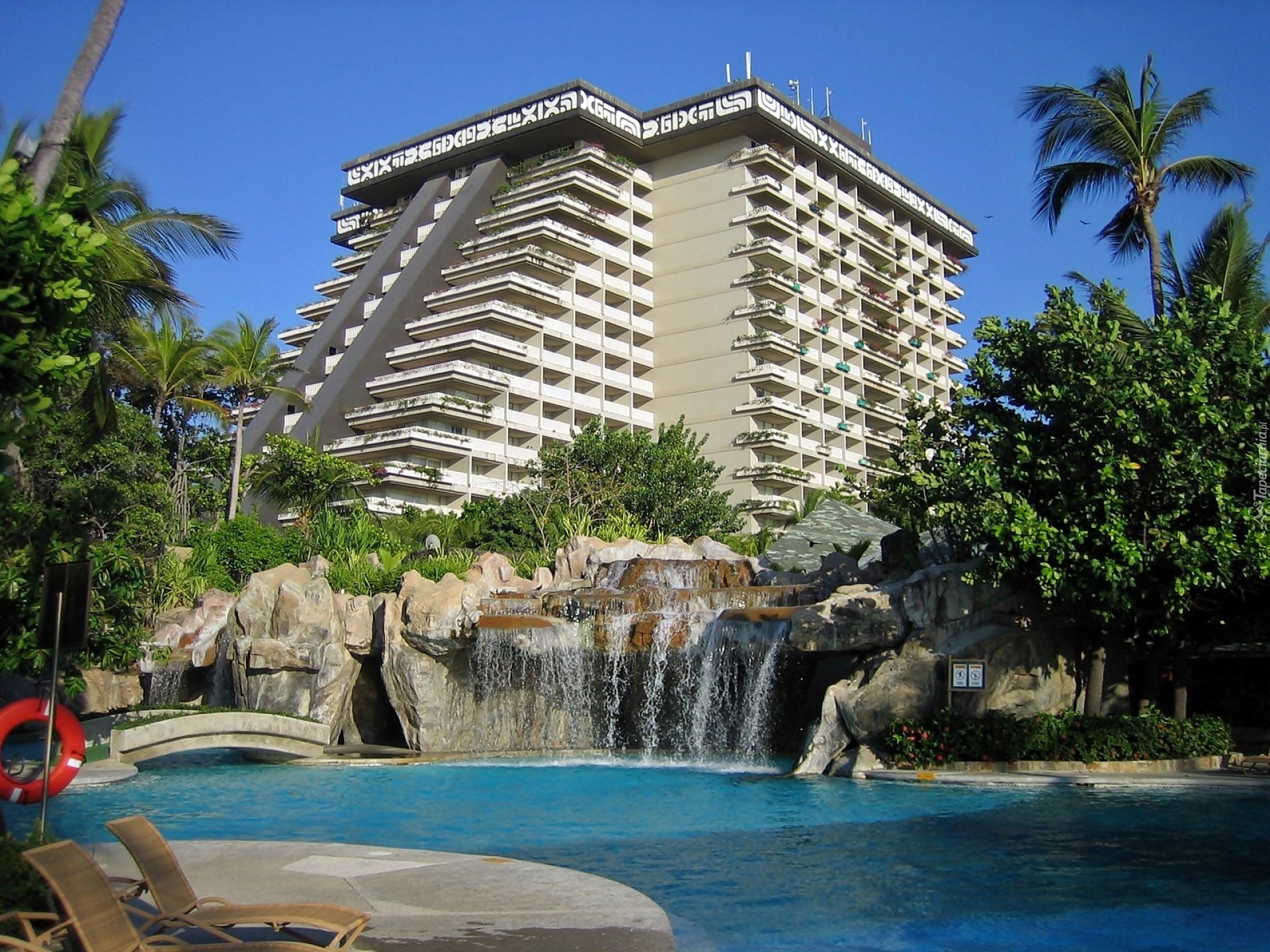 Edytor tapety: Acapulco, Hotel, Princess, Kaskada, Basen, Ogród