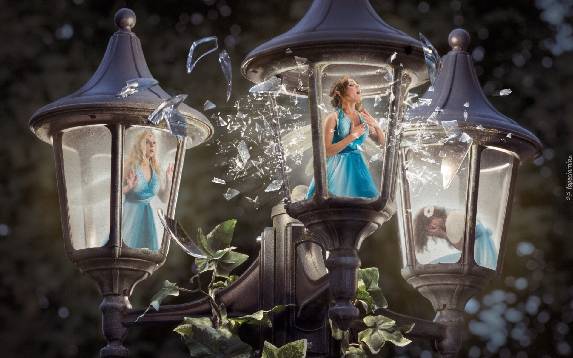 Edytor tapety: Latarnia, Kobiety, Park, Drzewa, Grafika