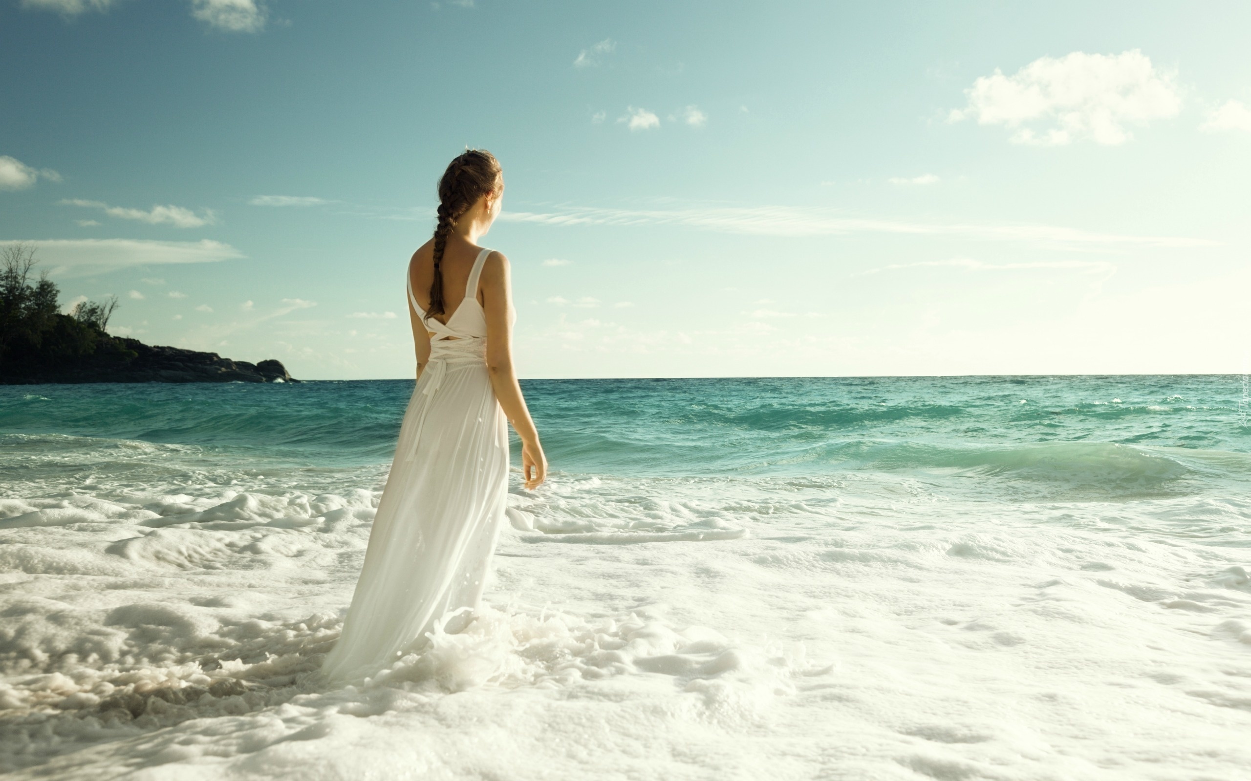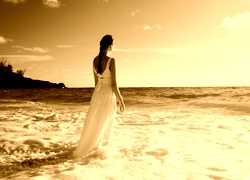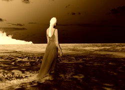 Edytor tapety: Kobieta, Morze, Fale, Skały